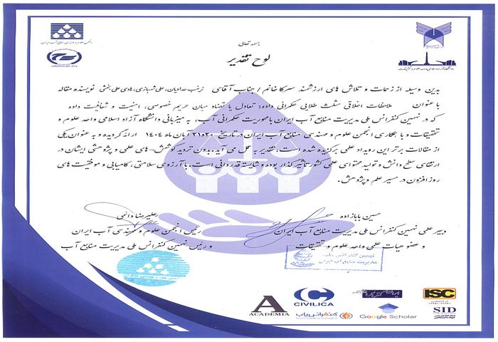به گزارش شبکه خبری سازمان آب و برق خوزستان، علی شهبازی با بیان این خبر اظهار کرد: در پی برگزاری نهمین همایش ملی مدیریت منابع آب ایران با رویکرد حکمرانی آب که در تاریخ ۲۰ و ۲۱ آبان ۱۴۰۴ به میزبانی دانشگاه آزاد اسلامی واحد علوم و تحقیقات و با همکاری انجمن علوم و مهندسی منابع آب ایران در تهران برگزار شد، مقاله زینب حدادیان و همکاران با عنوان «ملاحظات اخلاقی مثلث طلایی حکمرانی داده: تعادل یا تضاد میان حریم خصوصی، امنیت و شفافیت داده» موفق به کسب عنوان «مقاله برتر» از سوی هیئت داوران شد.