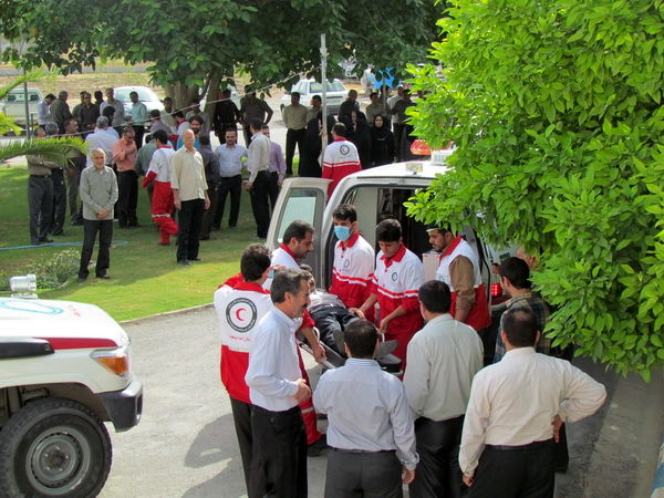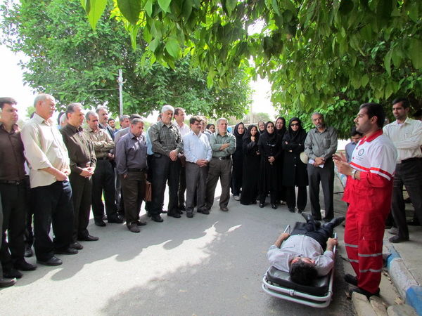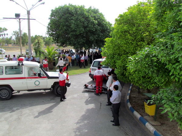 مانور تخلیه اضطراری كاركنان در اداره مرکزی شرکت بهره برداری از شبکه های آبیاری شمال خوزستان با همکاری جمعیت هلال احمر دزفول برگزار شد.