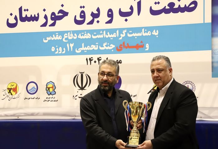 به گزارش شبکه خبری سازمان آب و برق خوزستان، “امیر پیاهو” با بیان این که به مناسبت گرامیداشت هفته دفاع مقدس و شهدای جنگ تحمیلی ۱۲ روزه، مسابقات فوتسال کارکنان صنعت آب و برق خوزستان برگزار شد، شرکت توزیع برق خوزستان را به عنوان قهرمان این سری از مسابقات اعلام کرد.