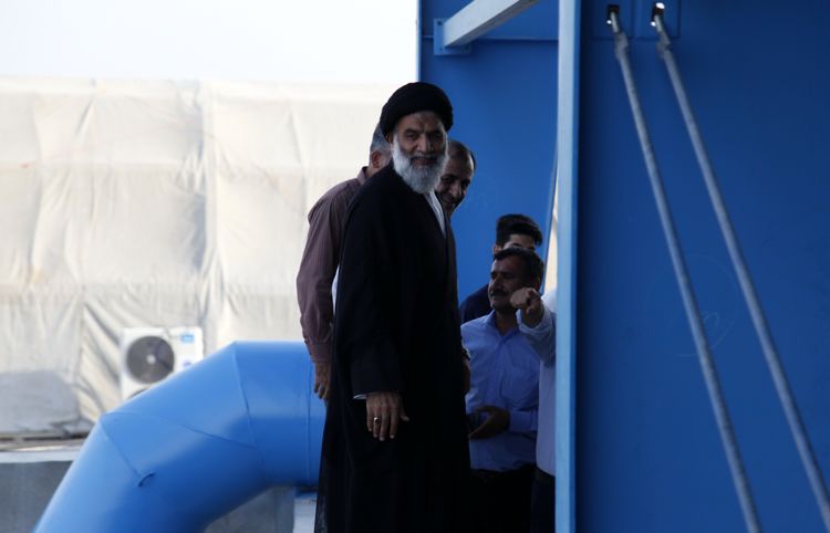 حجت الاسلام و المسلمین سید عبدالنبی موسوی‌فرد نماینده ولی فقیه در استان خوزستان به همراه عباس صدریان‌فر مدیرعامل سازمان آب و برق خوزستان از ایستگاه پمپاز شمال طرح آبرسانی غدیر بازدید کردند.
